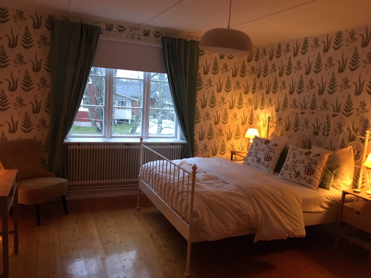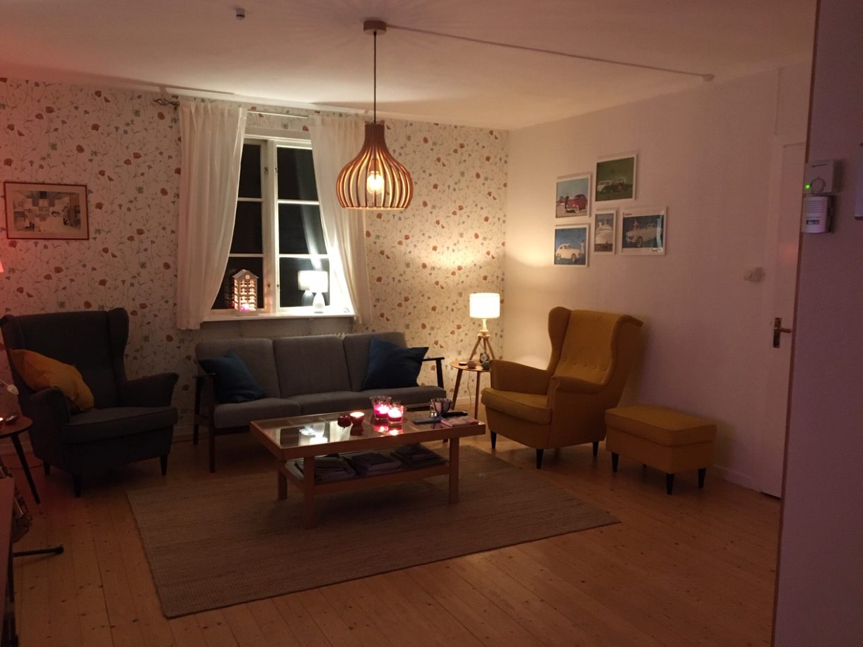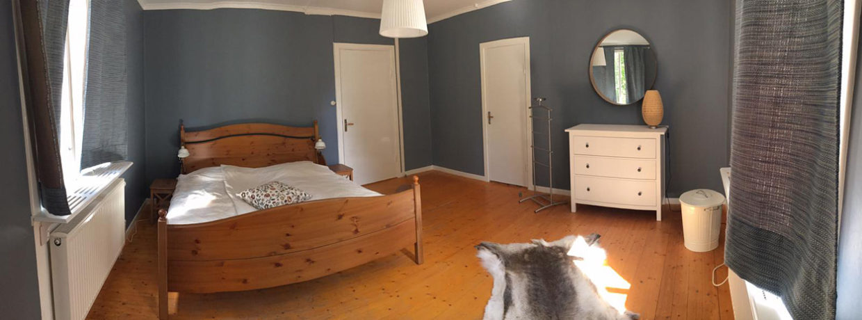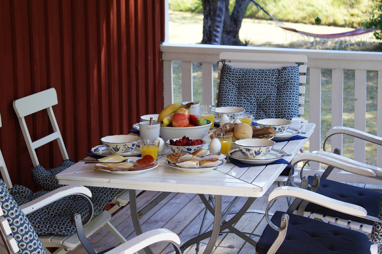 De tafel is groot en je kunt er gezellig eten.